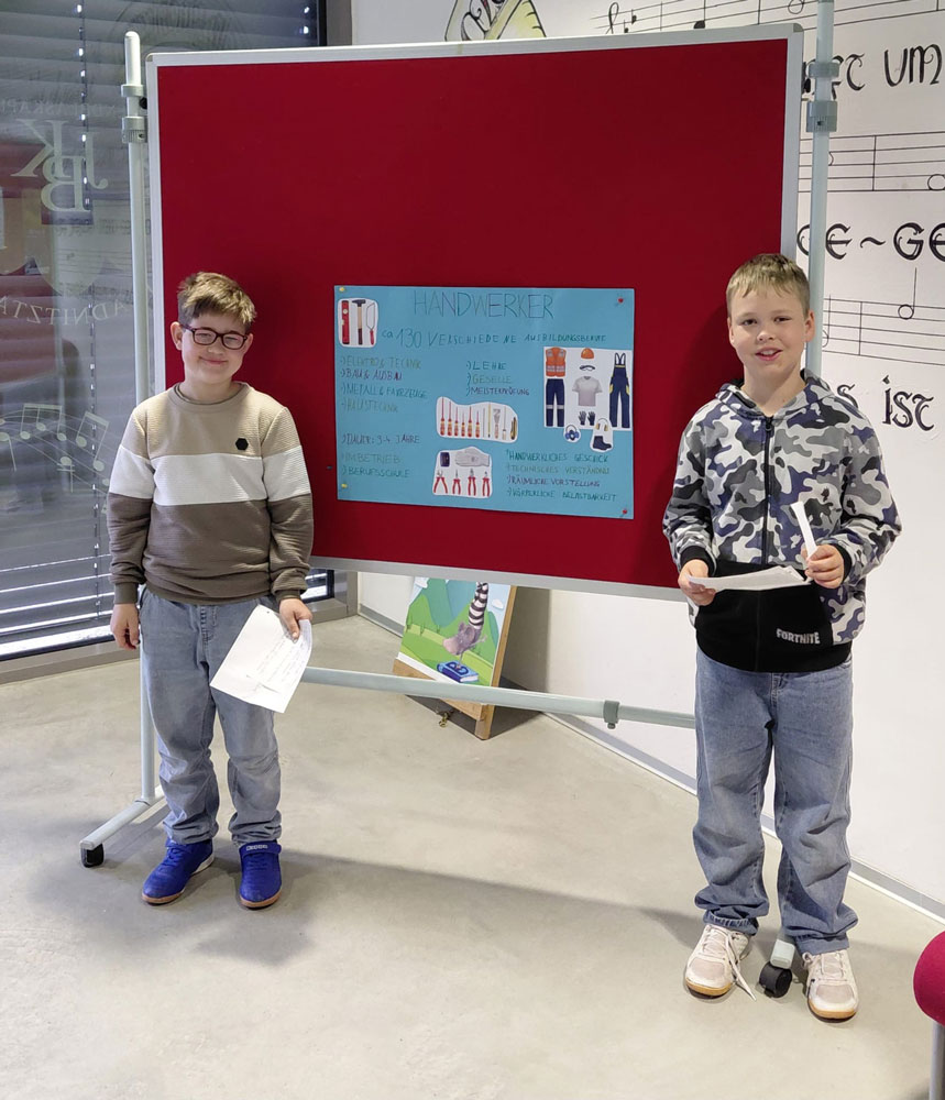Joel und Mattias hielten in der 4. Klasse ein spannendes Referat zum Thema Handwerk. Besonders im Fokus: Dachdecker und Spengler.