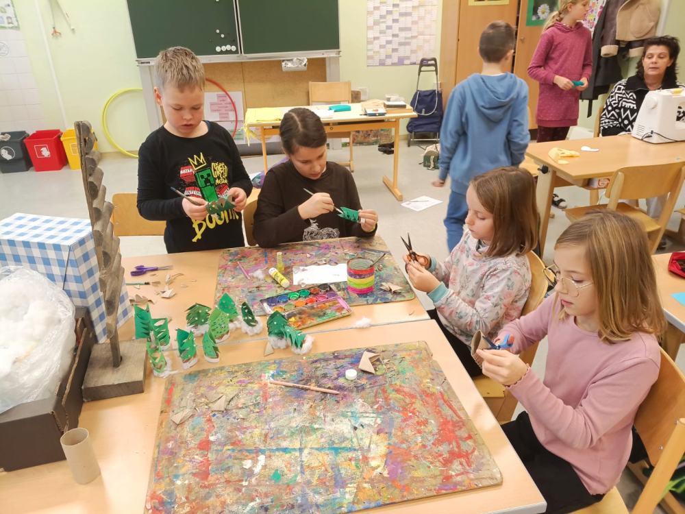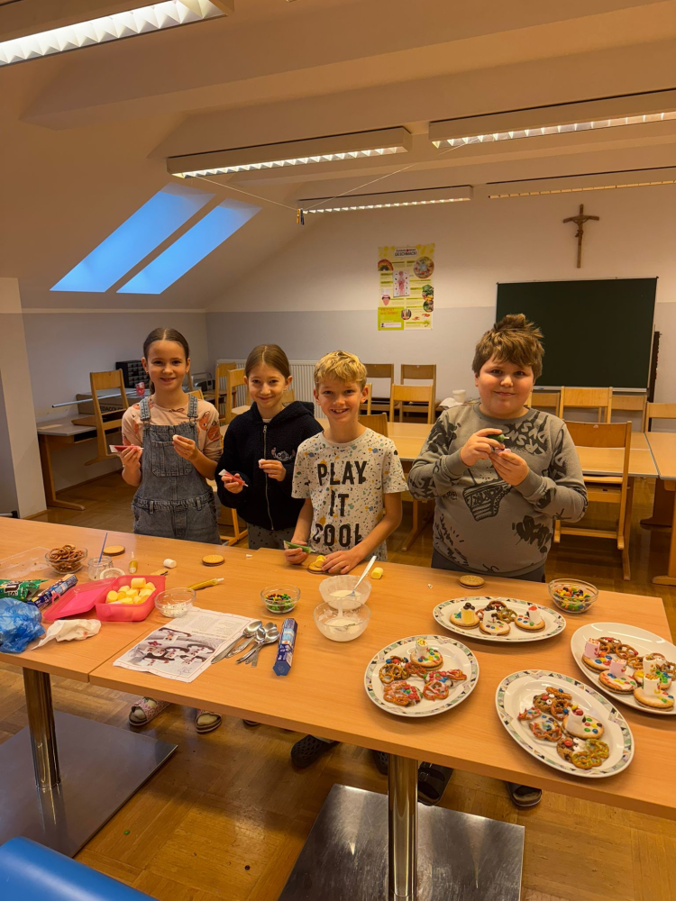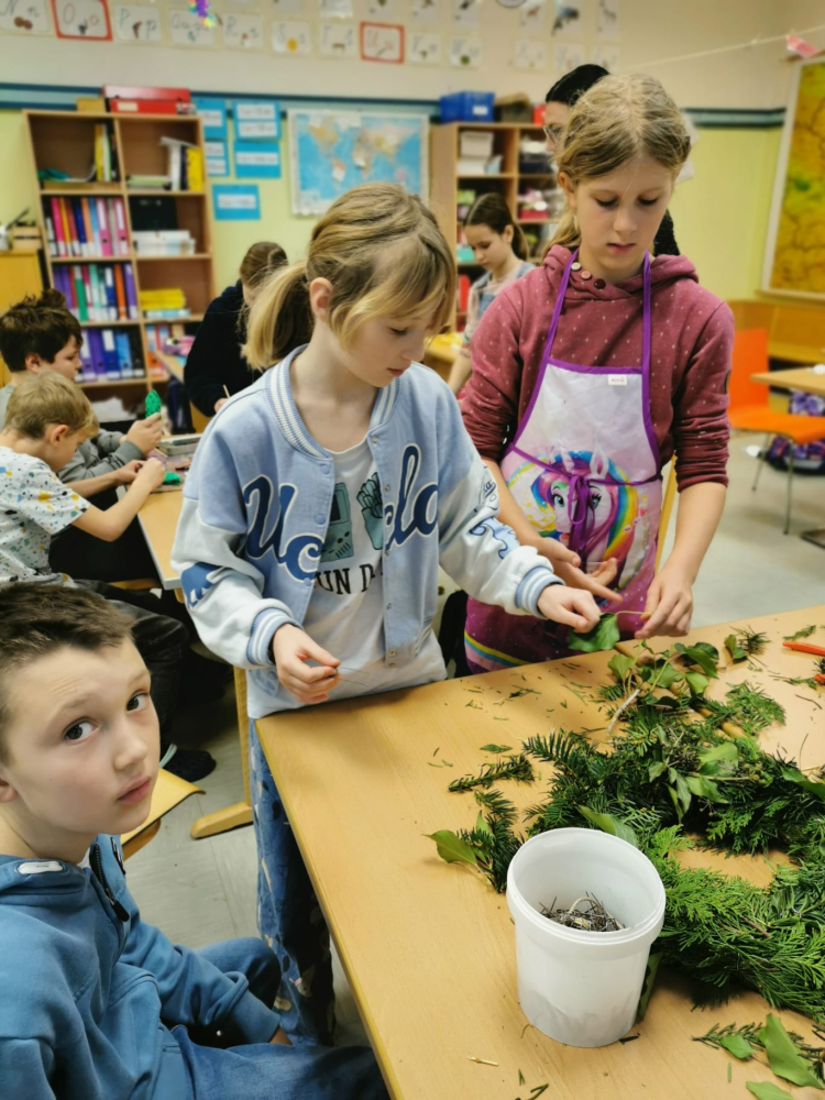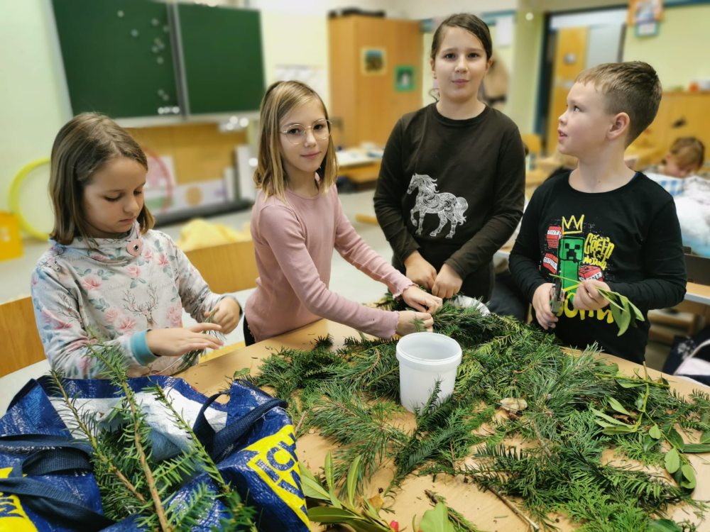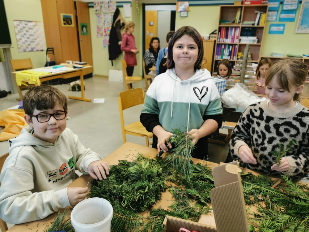 Gemeinsam mit engagierten Müttern durften die Kinder der 4. Klasse die Vorweihnachtszeit traditionell und kreativ erleben. Mit geschickten Händen entstand unter Anleitung von Frau Emsenhuber ein wunderschöner Kranz für die Klasse. Frau Kendler bastelte gemeinsam den Adventkalender, damit wird  jeder Tag im Dezember noch spannender.
